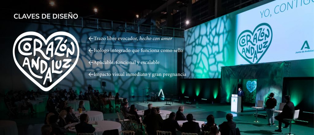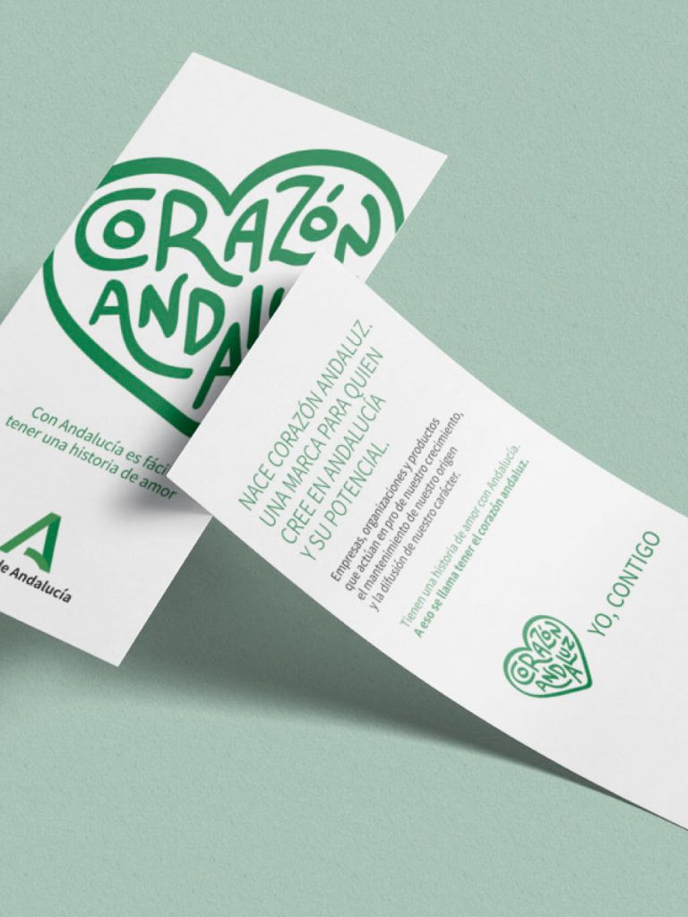 La Junta de Andalucía lanzaba nueva marca, una distinción para visibilizar la solidez, solvencia y calidad de los productos y servicios andaluces que la llevan. «Corazón Andaluz» debía contribuir a mejorar el prestigio de esos productos y a posicionar a la Comunidad como destino atractivo para la inversión, asociando a Andalucía con tierra de calidad, innovación y confianza. Le di forma gráfica junto al equipo de 16 Escalones.